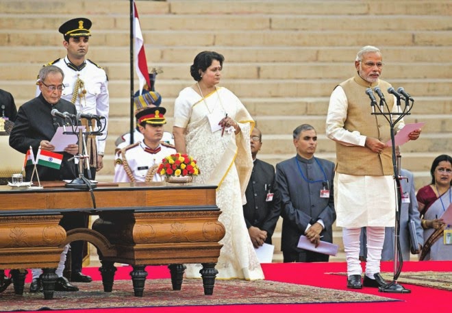 | Narendra Modi's swearing-in as India's PM in Delhi. |