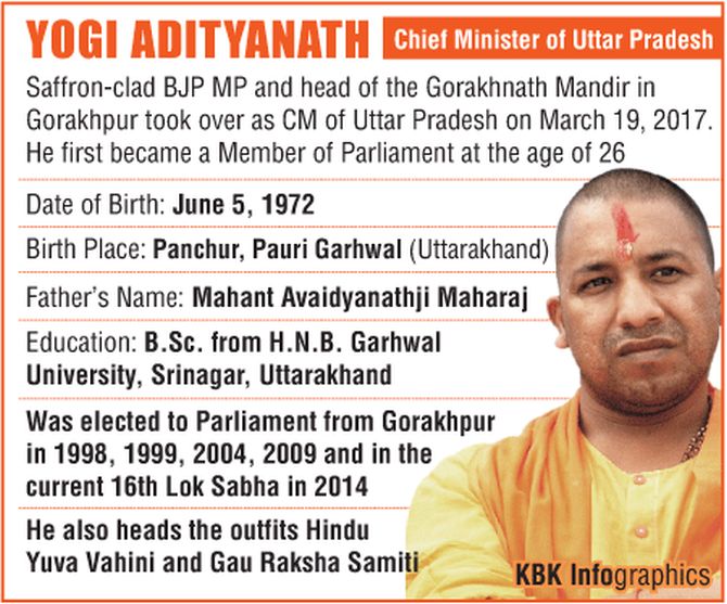Born Ajay Singh, the diminutive shaven headed politician who heads the Gorakhnath Mutt, is known for his powerful oratory, though most of his speeches hinge on divisive lines and has been in the forefront in keeping the communal politics alive in the country.