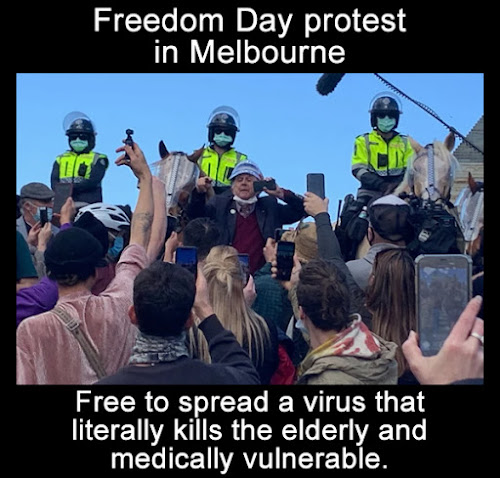 The protest appeared to have dispersed by around 2:30pm, but a strong police presence remained around the Shrine of Remembrance. Many of the protesters were not wearing masks. Some chanted "freedom", while others shouted insults at the media.